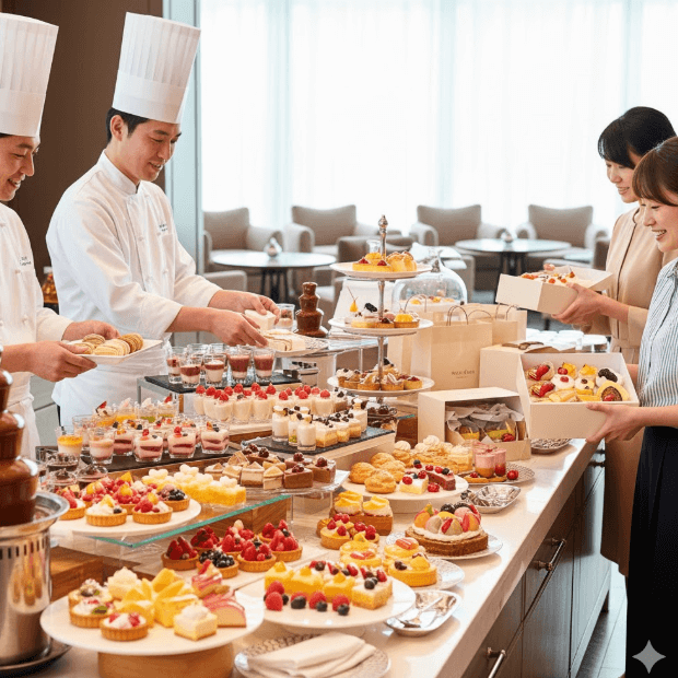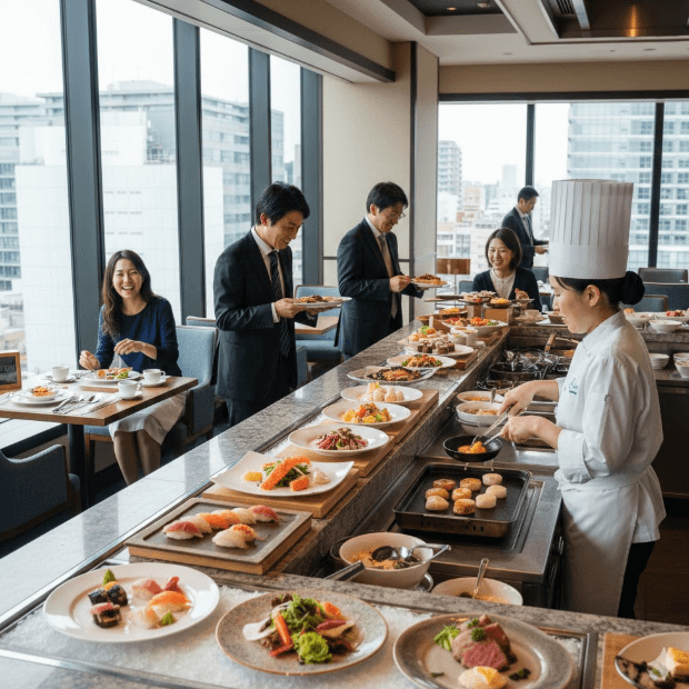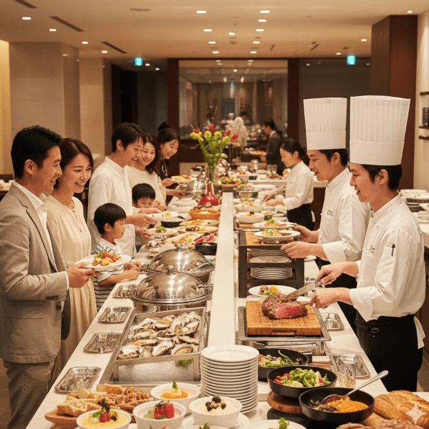 このサービスの質の高さはホテルのブランド価値を支える重要な要素です。ブッフェという形態であっても、利用者は「ホテルで食事をしている」という満足感や、特別な時間を過ごしているという感覚を強く得られるのでしょう。