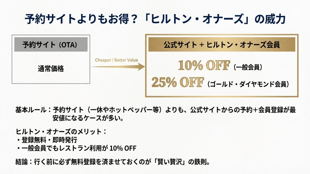 • 最大25%OFFも夢じゃない!ヒルトン・オナーズ会員を活用した最強の割引術
