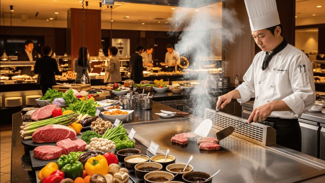 近年のランキング上位ホテルの傾向として、「ライブキッチン」の充実度が挙げられます。シェフが目の前で焼き上げるステーキの音と香り、揚げたての天ぷらの食感、握りたてのお寿司の新鮮さ…