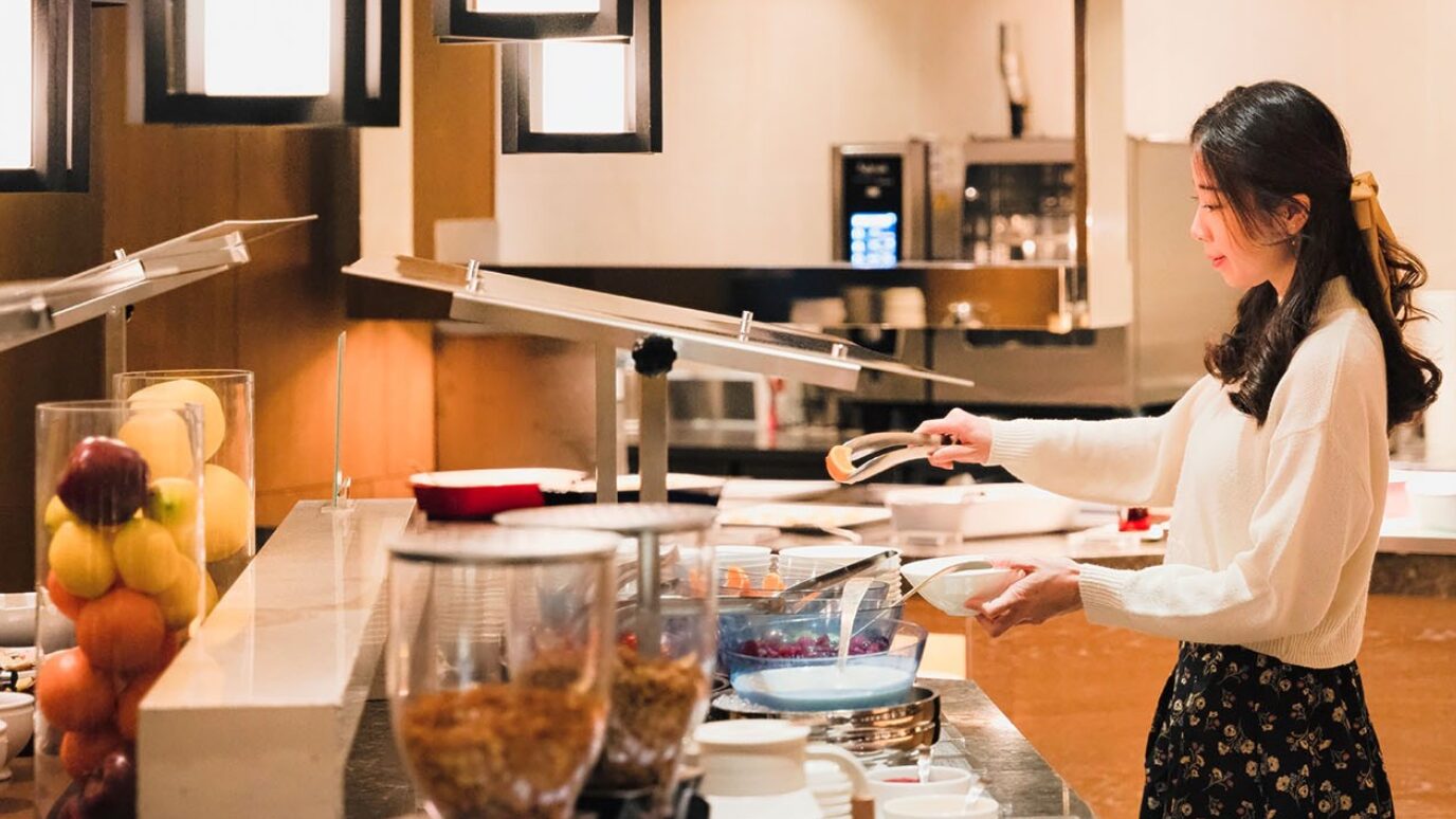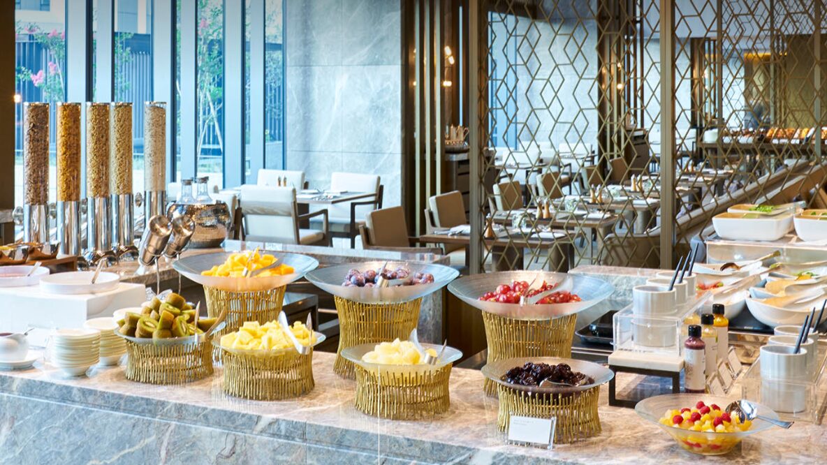 この他にも、色とりどりの新鮮な野菜が並ぶサラダバー、糖度の高いメロンや完熟の苺などが並ぶフルーツコーナー、ヨーグルトやシリアル、そしてホテルメイドのプリンやケーキといったデザートまで、一日の始まりを完璧なものにするためのすべてが揃っていると言えるでしょう。