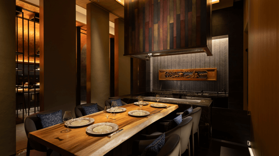 個室からも大阪の美しい景色を望むことができ、プライベート感を確保しながらも開放的な空間となっています。もちろん各個室には専用の鉄板カウンターが備え付けられており、専属のシェフが目の前で調理を行ってくれるため、カウンター席と何ら遜色のない迫力満点のライブ感を堪能できます。